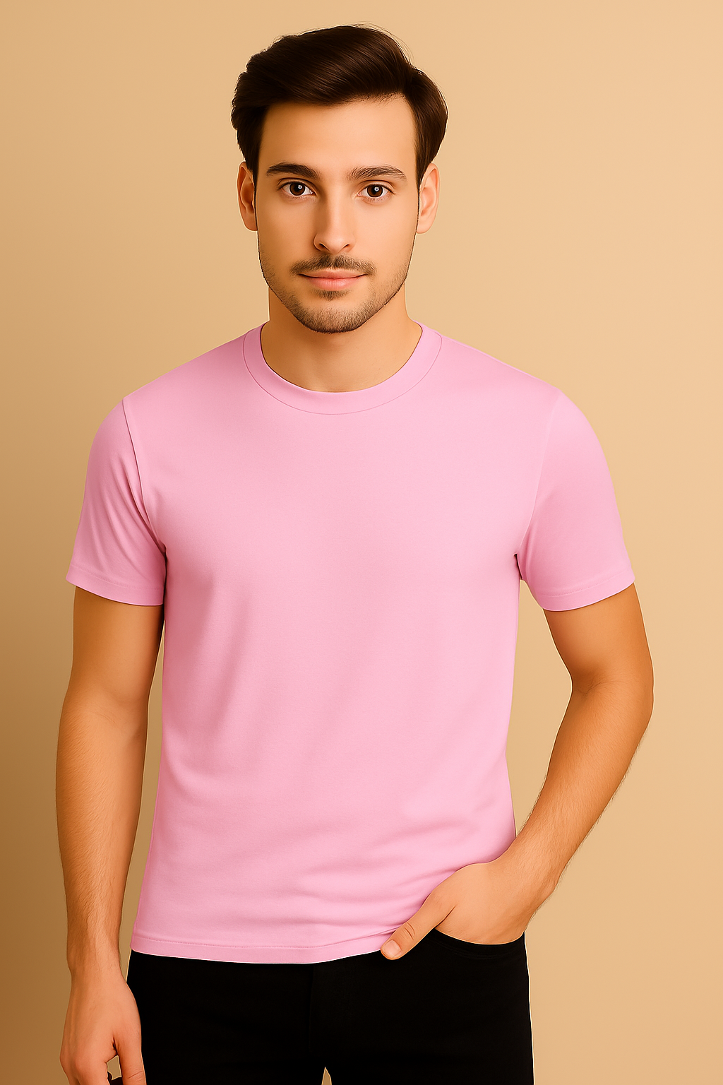 Light Pink Mens Round Neck T-shirt