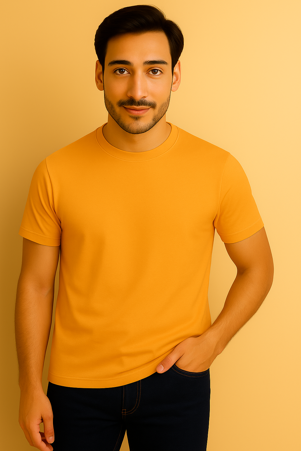 Mustard Yellow Mens Round Neck T-shirt